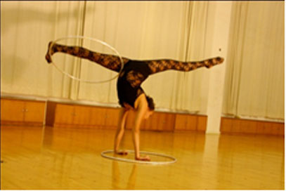 “呼啦圈”,在呼啦圈表演中,雜技演員運(yùn)用嫻熟的表演技巧,看似隨意地扭動著身體,一個又一個的呼啦圈在演員的腰間轉(zhuǎn)動起舞,優(yōu)美的舞姿讓人眼花繚亂。演員邊搖動身體,邊接受新增加的呼啦圈,上百個呼啦圈在速度的驅(qū)動下變化出各種姿態(tài),讓你感受曲線的柔美。