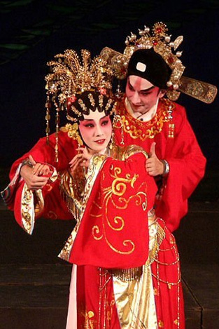 粵劇,漢族地方戲曲,原稱大戲或者廣東大戲,源自南戲,自公元1522年~1566年(明朝嘉靖年間)開(kāi)始在廣東、廣西出現(xiàn),是揉合唱做念打、樂(lè)師配樂(lè)、戲臺(tái)服飾、抽象形體等的表演藝術(shù)?;泟∶恳粋€(gè)行當(dāng)都有各自獨(dú)特的服飾打扮。最初演出的語(yǔ)言是中原音韻,又稱為戲棚官話。到了清朝末期,知識(shí)分子為了方便宣揚(yáng)革命而把演唱語(yǔ)言改為粵語(yǔ)廣州話,使廣東人更容易明白?;泟∶杏诠?006年5月20日公布的第一批518項(xiàng)國(guó)家級(jí)非物質(zhì)文化遺產(chǎn)名錄之內(nèi)。公元2009年9月30日,粵劇獲聯(lián)合國(guó)教科文組織肯定,列入人類非物質(zhì)文化遺產(chǎn)名錄。