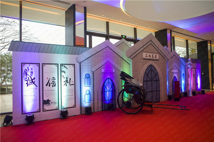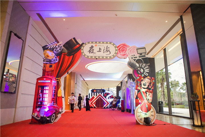 夜上海表達了這座城市的活力無窮,這種活力源自于三九的繁榮與芳華,他們是這座城市的強大的生命力。20世紀末上海經濟快速發(fā)展,城市全面繁榮,夜上海更以東方不夜城的耀眼姿態(tài)崛起,活動現(xiàn)場秒回了一幅幅改革開放后經濟繁榮充滿活力的上海畫卷,更表明了跨世紀的夜“三九”是一顆不斷令世界矚目的夜明珠。不眠的夜上海,如“三九”般,活力四射,綻放光彩。留影區(qū)以三九商道“誠信禮,勤智識”為主題,黃包車的象征著三九人兢兢業(yè)業(yè),不畏艱辛,努力奮斗。必將會成為業(yè)界的璀璨之星,登上最閃亮的舞臺放聲酣唱,綻放光彩!主舞臺以燈火輝煌繁榮景象,渲染著“三九”人的朝氣,示意著“三九”越做越好!走向輝煌!