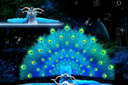 孔雀之戀華美昂貴的孔雀藍(lán)羽毛長(zhǎng)裙,神秘華麗的深藍(lán)幻境森林視頻,空靈的音樂(lè)中唯美曼妙的舞姿,…